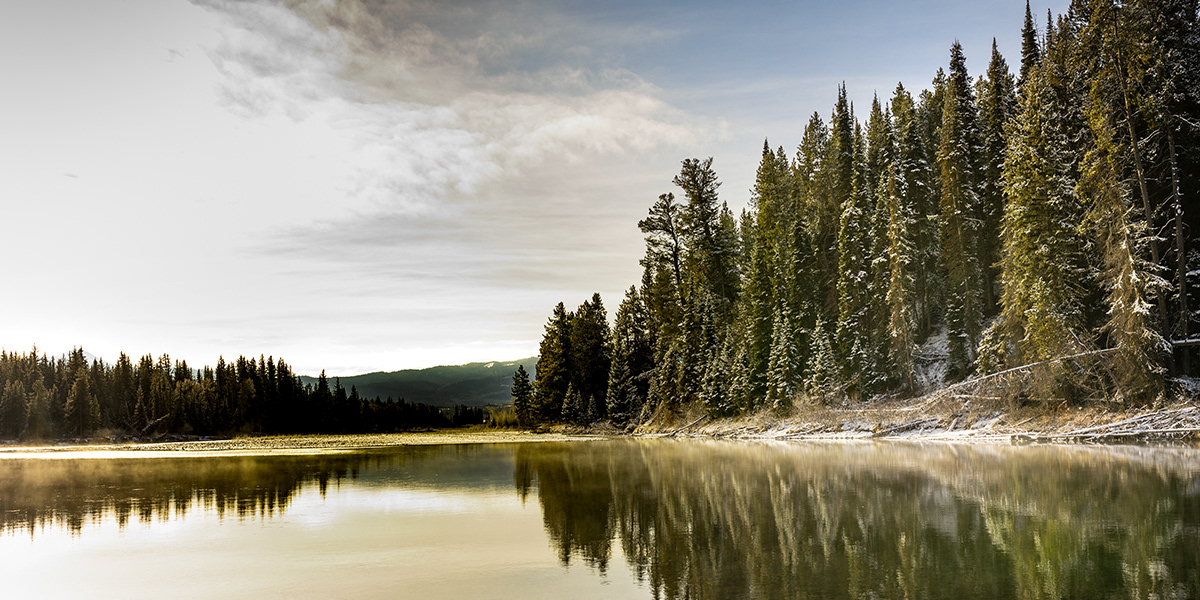 I took this image in the Grand Teton National Park early on morning just after sunrise. What I love about it the calm reflection of the trees in the water. Simple in it composition and yet profound at the same time.